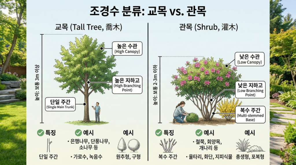 교목 관목 차이 완벽 정리: 조경 초보자도 쉽게 이해하는 나무 분류법